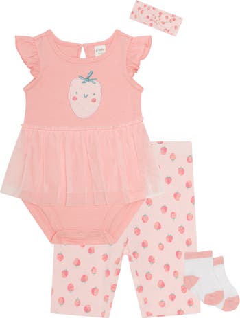 • Nicole Miller Gingham Skirted Bodysuit, Bloomers, Socks & Headband Set