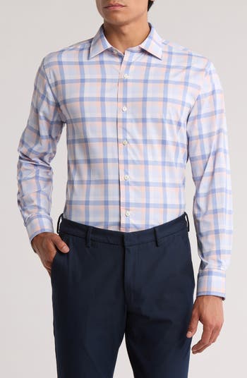 A crisp, classic plaid distinguishes a shirt tailored from a stretchy nylon blend that wicks away sweat and blocks odors to stay fresh all day.