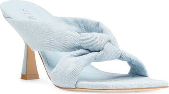 Chunky leather straps meet above the toes in a bold knot that adds pillowy elegance to this exquisite sandal.