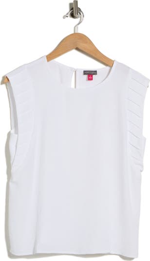 This pleated cap sleeve top features clean, structured detailing for a polished and streamlined look.
