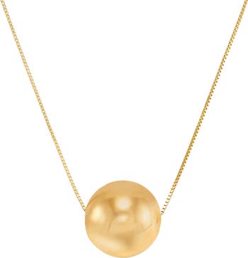 A polished bead suspends from a delicate chain necklace crafted from 14-karat gold.