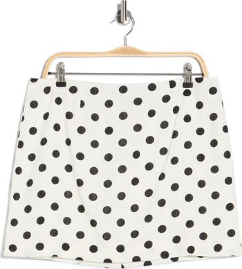 This linen‑blend polka dot miniskirt features a playful print and an easy, lightweight feel for a breezy, warm‑weather look.