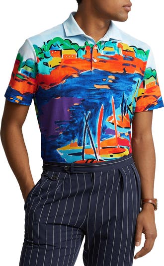 A vibrant motif inspired by a sailboat wharf enlivens this version of the brand’s signature mesh polo shirt.