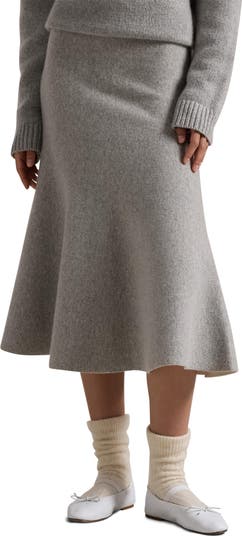 A cashmere-enriched yarn blend brings cool-weather comfort to a swingy fit-and-flare skirt designed with a smooth fit at the waist and hips.