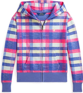 Keep your kid comfy in this lightweight cotton French terry full-zip hoodie boasting a vibrant plaid print with a vintage-inspired wash.
