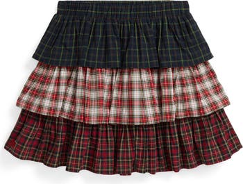 They'll love the playfully tiered silhouette of this all-cotton skirt featuring a mix of plaids.