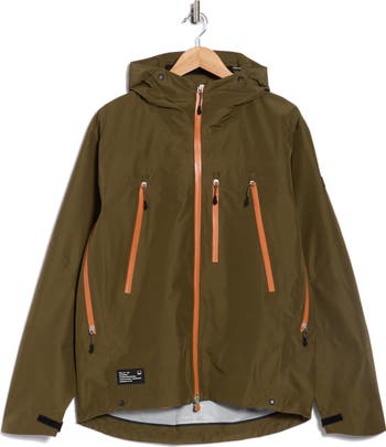 Get outdoors in this adventure-ready jacket boasting a water-repellent, seam-sealed ripstop shell framed by underarm zip vents and secure zip pockets