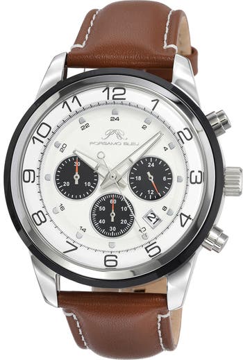 A sleek leather strapped watch with Japanese quartz movement and buckle closure offers a versatile look for work or casual wear.