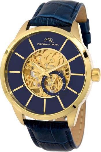 This captivating leather-strap watch lets you take a look at the beauty and precision of the reliable automatic movement at work.