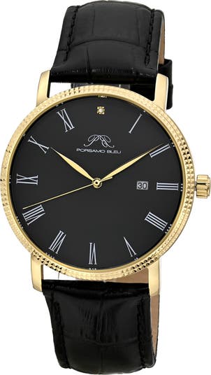 • PORSAMO BLEU Men's Henry Miyota Quartz Croc Embossed Leather Strap Watch, 40.8mm