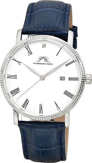 Veritas 1 Croc Embossed Leather Strap Watch, 40mm