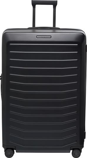 Exterior features: A water-resistant shell adds protection from the elements and forceful impacts. Smooth leather handles provide a comfortable grip. Silent ball-bearing 360-degree wheels deliver traction and shock absorption.
