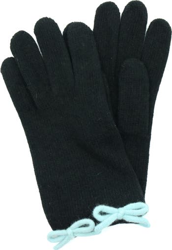 A luxe blend of cashmere, wool and silk defines these cozy knit gloves adorned with an adorable bow accent.