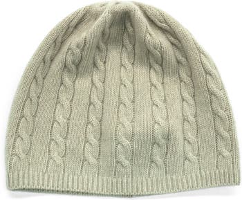 Knit cables add classic charm to this cozy cashmere beanie that'll keep you toasty when the weather is cold.