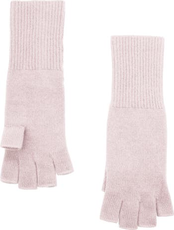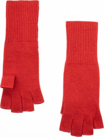 Keep your hands toasty with these fingerless gloves knit from Italian cashmere with ribbed cuffs.