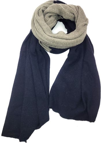 A colorblock design emboldens this ultracozy scarf knit from lambswool- and angora-blend yarns for a luxuriously soft feel.