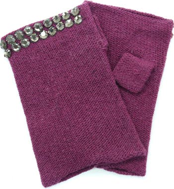 Glistening crystals frame the cuffs of these fingerless gloves knit from ultrasoft cashmere yarns to keep your hands warm.