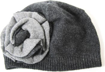 Treat yourself to the irresistible warmth of this wool and cashmere beanie adorned with a contrasting rosette accent.