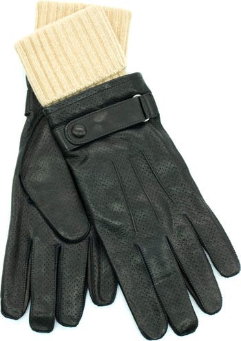 Brave the outdoors in frigid weather and feel the warmth of these luxe leather gloves that are lined with cashmere and feature a knit cuff.
