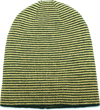 Warm up in this slouchy beanie that is made from a blend of toasty fibers in a stripe pattern.