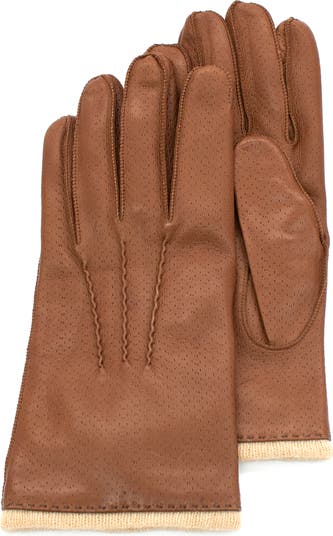 Perforated leather gloves lined with lambswool make a toasty accessory you'll love to add to your cold-weather look.
