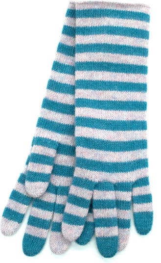 Knit in a striped pattern, these cozy gloves feature tech compatible fingertips to keep connected in the cold.