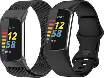 A 2-piece set features a silicone sport band and a stainless steel mesh band to bring versatility to your watch game. Compatible with Apple Watch SE & Series 7/6/5/4/3/2/1.