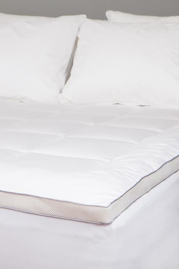 Experience a more restful sleep and recover more quickly from your daily physical activity with the Powernap Active Energy Performance Gel Fiber Mattress Pad. This mattress pad utilizes a natural particle-based thermo reactive nano coating that uses body heat to trap energy in the coated particles and transmit it back within the far infrared spectrum. Constructed with 1.5-inch breathable mesh gusset and lofty framed box quilt design for reduced shifting of fill. Detailed with cool gray satin cord edging and stretch skirt to fit up to 18-inch deep mattress. This mattress pad is filled with hypoallergenic gel fiber offering soft and lofty back support. Machine washable for easy care. The Powernap technology supports body thermoregulation, and increase oxygenation and circulation ideal for people with active lifestyle.