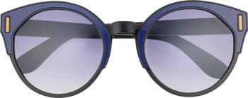 - - Size: 53-140-22mm (eye-temple-bridge) - Frame Color: Black/blue - Lens Color: Gradient blue - Frame Material: Plastic - Lens Material: Plastic - Protection: 100% UV - Made in Italy Proposition 65 is a California regulation that requires special warnings to be presented to customers if a product contains certain quantities of chemicals or toxicants known to the State of California to cause cancer, birth defects, or other reproductive harm.