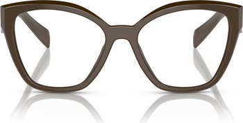 Show off chic style with these butterfly-shaped optical frames featuring integrated nose pads and logo-embellished temples.