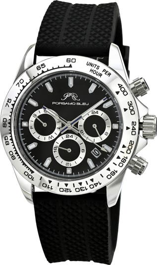 Enjoy the precise timekeeping of this water-resistant silicone-strap watch featuring three-hand movement, a clear date window and multifunctional subdials.