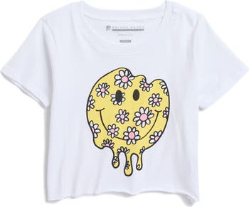 Your groovy one will love the fun look of this melted floral smiley face graphic T-shirt cut from comfortable cotton for them.