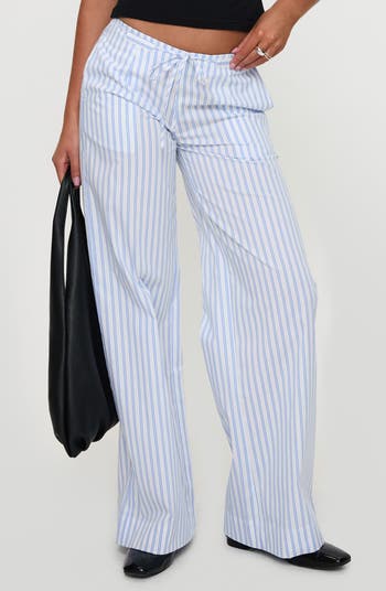 Vertical stripes and a low-rise drawstring waist define these cool wide-leg pants cut from lightweight and breathable cotton blend.