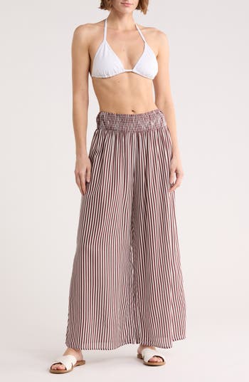 Stroll from the beach to the boardwalk in these lightweight cover-up pants fashioned with a comfy smocked waist and flowy wide-leg silhouette.