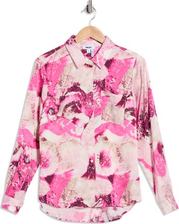This satin‑finished shirt features a front button closure and long sleeves with roll tabs offering a smooth, polished look with versatile styling options.