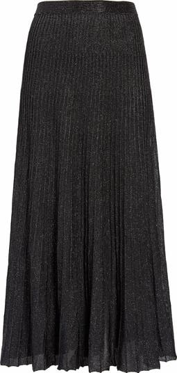 Metallic threads usher in seasonal sparkle on a ribbed midi skirt that's an excellent choice for your evening.