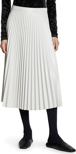 With all the luxe goodness of the real deal, this faux-leather skirt adds swingy pleats to the party.