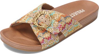 A contoured footbed and plush memory‑foam cushioning support every step in this slide sandal, finished with decorative embroidery and a buckled strap for the perfect fit.