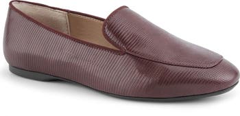 A squared-off toe and reliable rubber sole balance a poised loafer supported by a cushioned memory-foam cushioned footbed for long-lasting wear.
