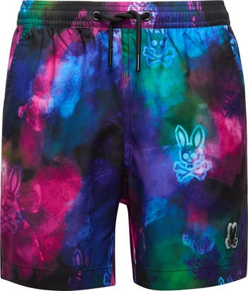 An illusion-creating print keeps them feeling confident as they make their way through the water in these stretchy swim trunks.
