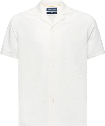 Seersucker-inspired ribbing makes a go-to favorite of a camp shirt crafted from a soft cotton-blend knit and designed to keep your kiddo comfortable.