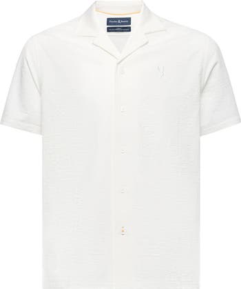 A tonal motif lends subtle heritage appeal to a camp shirt cut from a breathable cotton blend for easy layering all summer long.