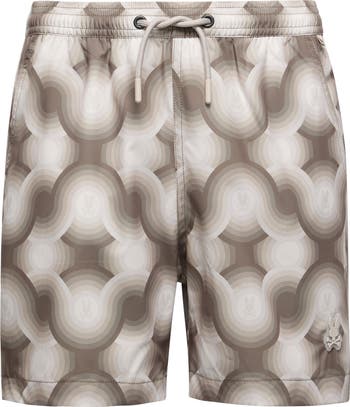 An illusion-creating print keeps them feeling confident as they make their way through the water in these stretchy swim trunks.