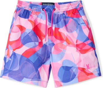 Whether they're diving in or kicking back, these quick-dry swim trunks bring comfort and attitude with a striking print and breathable mesh lining.