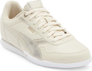 Metallic panels bring eye-catching shine to this sporty faux-leather sneaker constructed with breathable mesh lining and a white grip sole.