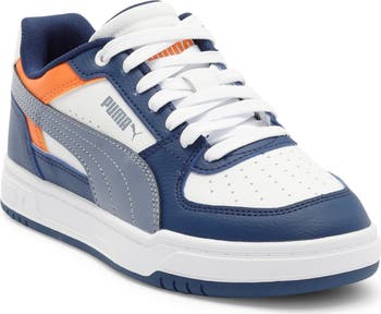 Give your kid sporty style with this paneled leather sneaker featuring a perforated toe box, breathable mesh lining and a grippy rubber sole.