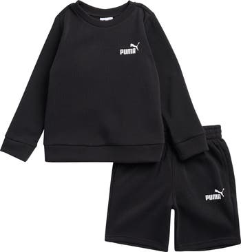 Keep your little one cozy in this soft fleece sweatshirt and shorts set featuring sporty logo prints.