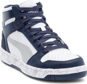 Colorblock details and a perforated toe further the sporty appeal of a basketball-inspired sneaker designed with a heritage Formstrip for a cool and classic look on and off the court.