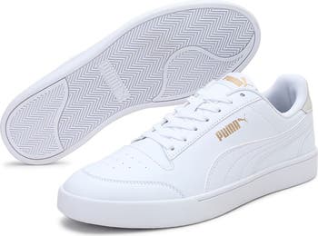 The Puma Shuffle is the new interpretation of a classic Puma court icon. This 80s basketball inspired silhouette features a soft synthetic leather upper with a suede heel overlay as well as perforation details on the vamp. On top it offers a great fit. This clean yet stylish everyday trainer is made for daily wear! Sizing: True to size.