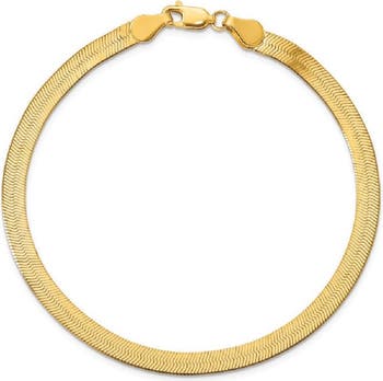 Flat herringbone links cast in 14-karat gold comprise this polished chain bracelet perfect for stacking.